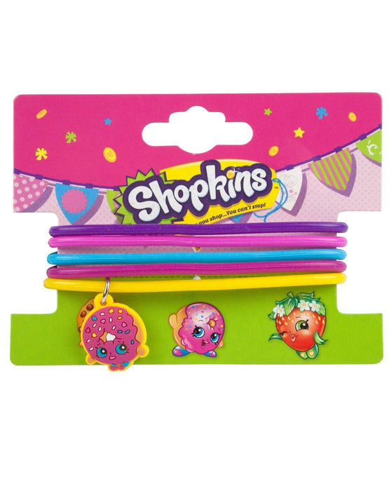 Dress up in Shopkins style with these sweet children’s jelly bracelets! Made from five thin rubber bands in purple, pink, blue and yellow, this bracelet pack sees the popular Shopkins character D’Lish Donut as a small dangling charm attached to the yellow bracelet band. These Shopkins bracelets are made from slightly stretchy material to easily slip over the hand. Not suitable for children under 3 years old due to small parts. Ensure to remove all items before sleep. This item is 100% genuine licensed Shopkins merchandise & features official branding throughout. We want you to get the most out of your new bracelets, so please be sure to follow all care label instructions and contact our dedicated customer service team for any additional information or sizing queries.