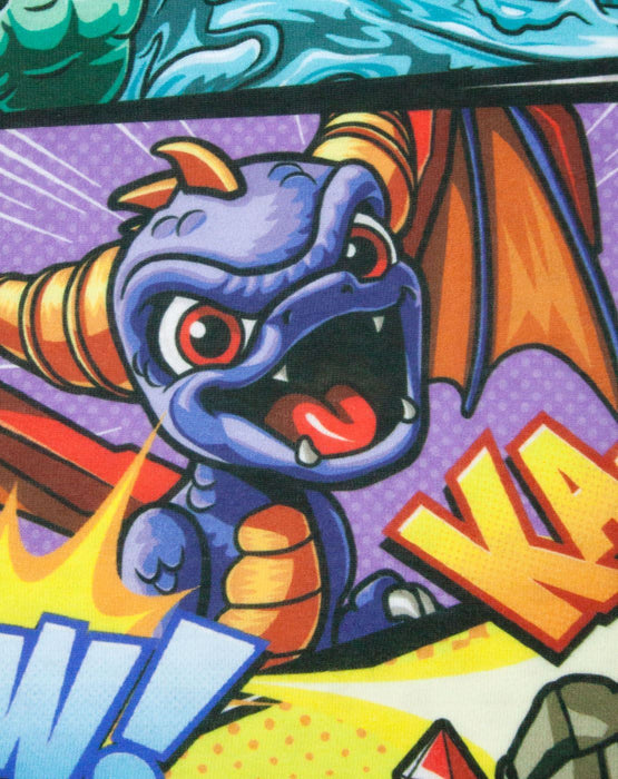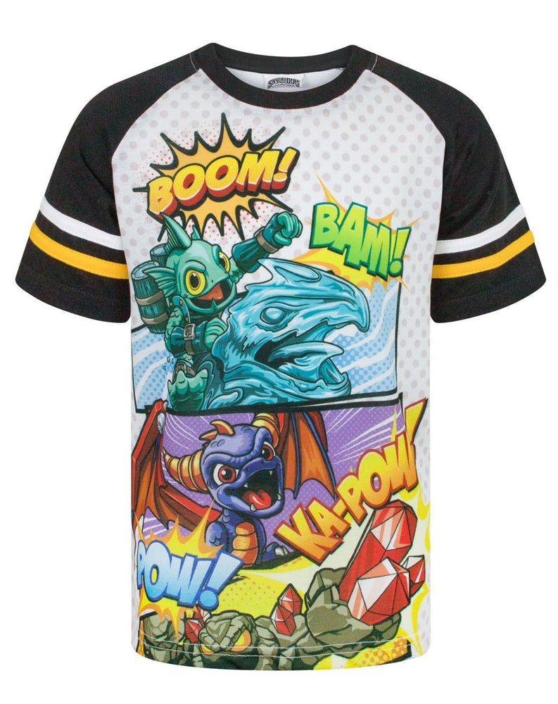 KA-POW! Add some Skylanders style to your life with this super awesome Skylanders boy’s t-shirt! Featuring some of the most iconic characters from the series, this t-shirt is a must-have addition to any little ones wardrobe! The t-shirt comes with an all-over sublimated print, featuring characters Spyro, Gill Grunt and Prism Break in a cool comic panel-styled design in rich colour along with comic style headings throughout. The colourful design is backed by a grey dot repeated pattern and features Skylanders logo. Offering a unique style, this t-shirt also comes with contrasting black sleeves with orange and white stripes making it a stand out garment. This t-shirt offers a standard crew neck, with short sleeves and comes in UK sizing making the perfect gift for Skylanders lovers. The body is made from 100% polyester, while the contrasting sleeves are made 100% cotton for a comfortable feel. This item is 100% genuine licensed Skylanders merchandise & features official branding throughout. We want you to get the most out of your new t-shirt, so please be sure to follow all care label instructions and contact our dedicated customer service team for any additional information or sizing queries.