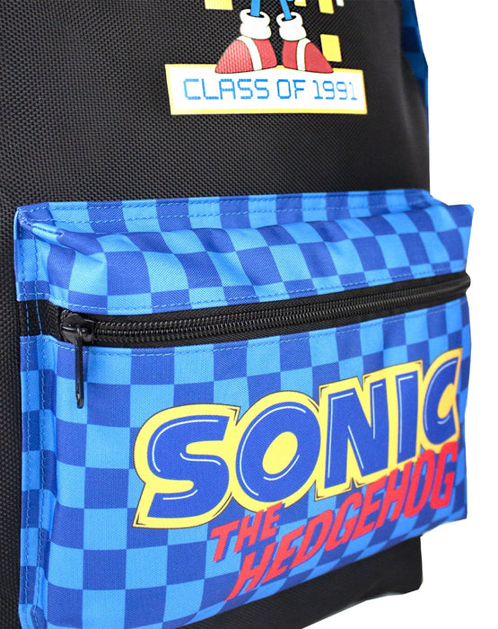 Let’s blast through with Sonic power with our super cute Sonic The Hedgehog backpack perfect for them Sega gamers and movie lovers! The Sonic the Hedgehog rucksack for boys and girls is packed with awesome detail and is bound to transform any child or teenager into the game, giving them the power to curl into a ball and attack any enemies such as Doctor Eggman throughout school days and adventure days out. The black & blue backpack features the pixelated look from classic 1991 Sonic the Hedgehog game making an awesome gift for him and her. Featured across the front of the bag is an awesome print of the fan favourite gaming icon Sonic, standing on a plaque saying 'Class of 1991', underlined with the Sonic The Hedgehog logo print on the front pouch pocket. The Sonic bag has a large inside section perfect for carrying everyday and school necessities including A4 folders, school books, pencil cases, lunch bags and snacks with two adjustable shoulder straps for a comfortable fit, an additional mesh side pocket for carrying your water bottle and a zip up front pocket. A lightweight but sturdy bag made from 100% polyester and measures 41cm x 33cm x 21cm; this bag looks great and will allow you to blast your favourite enemy on the go, with character friends Knuckles, Tails and Amy Rose! This item is 100% genuine licensed Sonic the Hedgehog merchandise & features official branding throughout. We want you to get the most out of your new backpack, so please be sure to follow all care label instructions and contact our dedicated customer service team for any additional information or sizing queries.