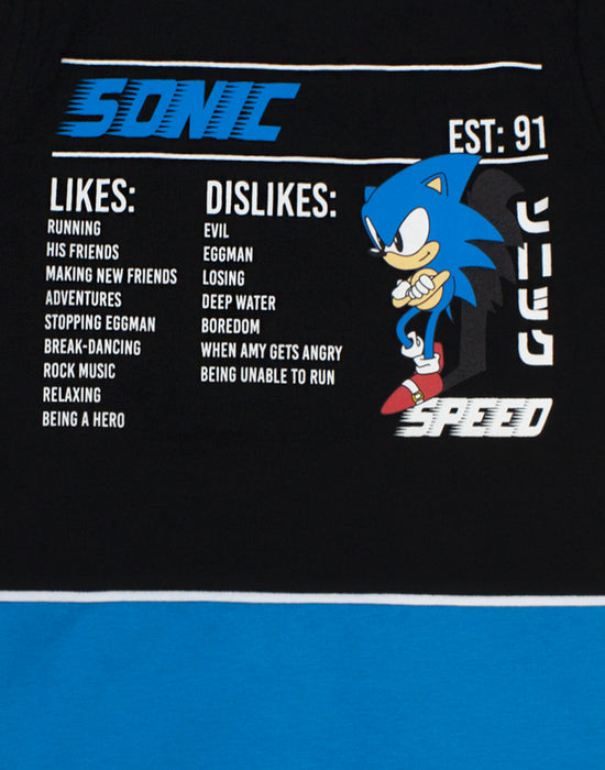 Sonic the Hedgehog Sonic Stats Graphic Boys Black Short Sleeved T-Shirt