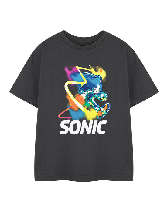 Sonic the Hedgehog Watercolour Boys Grey Short Sleeved T-Shirt