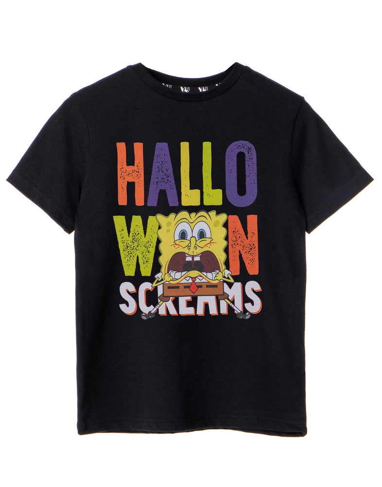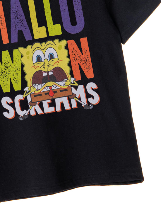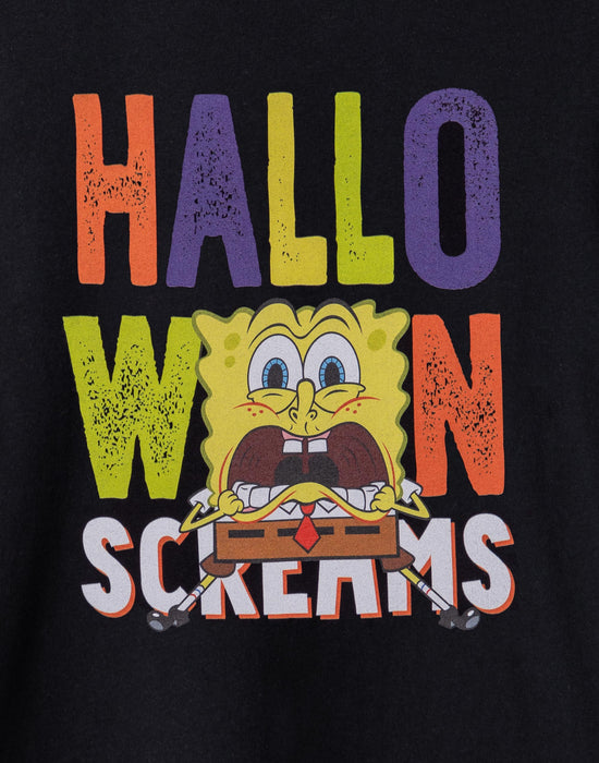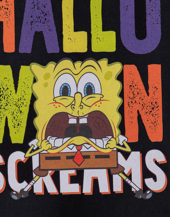 Make a splash this Halloween with the SpongeBob SquarePants Halloween Screams Kids Black Short Sleeved T-Shirt!