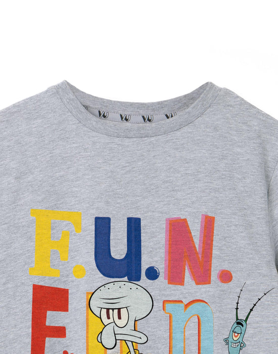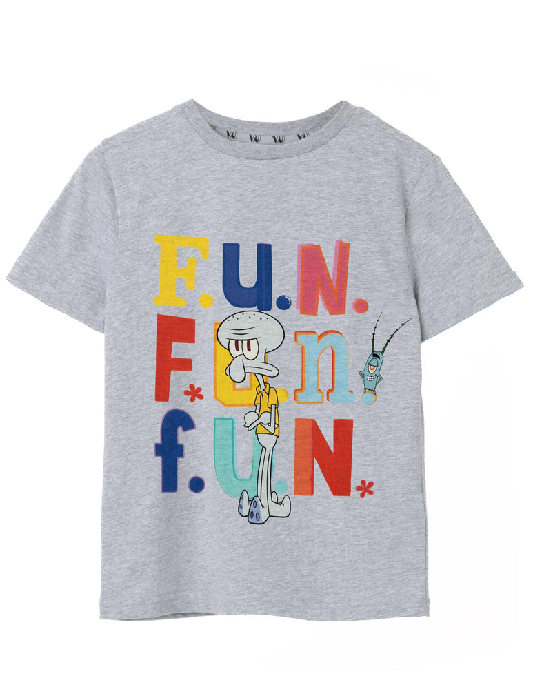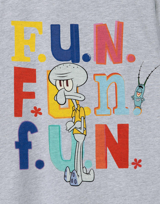 Dive into an ocean of fun with this SpongeBob SquarePants Squidward Fun Boys Grey Marl Short Sleeved T-Shirt!