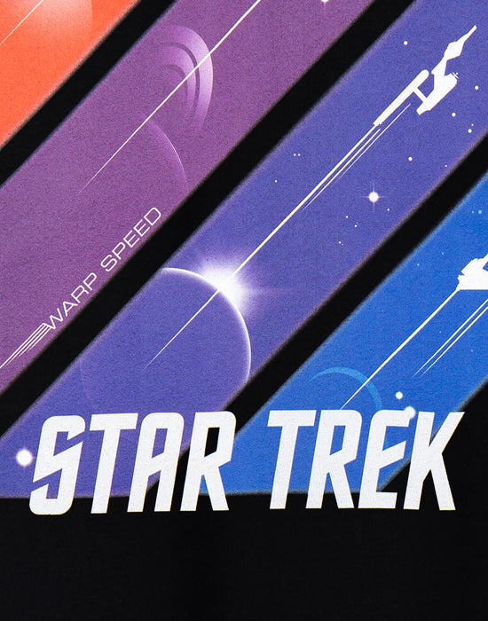 Make a statement and boldly go where no fan has gone before with our Star Trek Ships in Space Men's Black T-Shirt!