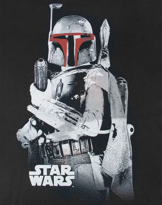 Add some Star Wars style to your wardrobe with this awesome Star Wars Boba Fett Bounty Hunter womens t-shirt! Perfect for fans of the iconic bounty hunter, the large design sees Boba Fett in a crisp white and red print, finished with an distinctive distressed effect look. This Boba Fett Bounty Hunter t-shirt for women is made from 100% cotton, comes in classic black and offers a standard ladies fit with crew neck and short sleeves.