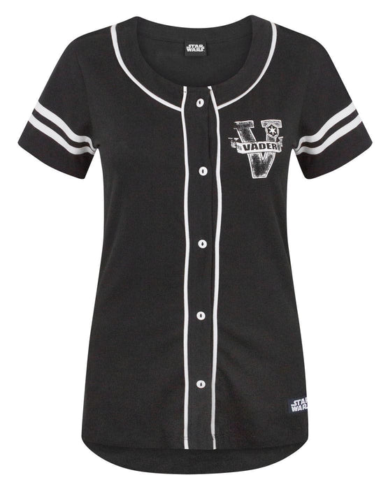A fashionable addition to your wardrobe with this Star Wars Dark Side women's baseball t-shirt! This baseball style t-shirt features a cool Star Wars Dark Side design showcasing Darth Vader inspired print on the chest and Dark Side on the back. This t-shirt comes in a classic baseball style with button front, drop hem and striped capped sleeves.