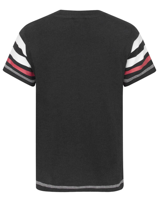 A cool twist on the Star Wars look, this Darth Vader t-shirt for kids is packed with cool detail making it a fun addition to any little ones wardrobe! The print across the front of the t-shirt showcases the iconic Darth Vader with his lightsaber drawn and ready for the battle, underlined by the Star Wars logo. Offering a cool alternative look, this t-shirt is complete with red and white stripes across the sleeves and offers a cool mesh material for the front printed panel with interior black lining. This t-shirt offers a crew neck and short sleeves with a slight drop hem at the back of the garment and comes in black. The front panel is made from 100% polyester, while the back and sleeves are 100% cotton. This item is 100% genuine licensed Star Wars merchandise & features official branding throughout. We want you to get the most out of your new t-shirt, so please be sure to follow all care label instructions and contact our dedicated customer service team for any additional information or sizing queries.