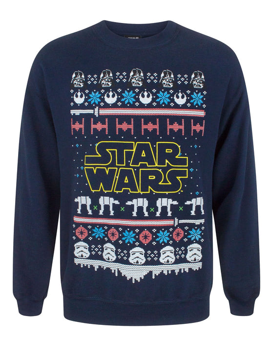 Add some Star Wars to your Christmas with this super fun Star Wars Christmas Sweatshirt! The perfect thing to wear throughout the Christmas period, this sweatshirt showcases iconic imagery from the Star Wars series in a festive, faux-knitted style print! The Star Wars logo features prominently in the centre of the print, with iconic imagery recreated in a knitted style around it; Darth Vader, Stormtroopers, lightsabers, AT-ATs and Tie Fighters are all seen within the design, perfectly mashing Christmas and Star Wars together.