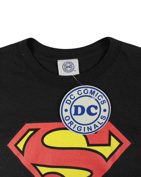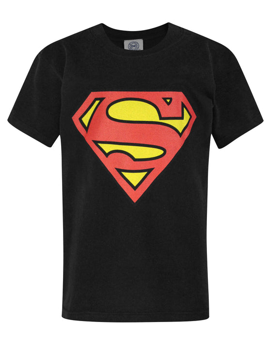 Superman Iconic Shield Logo Boy's Children's Black T-Shirt Top