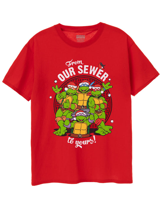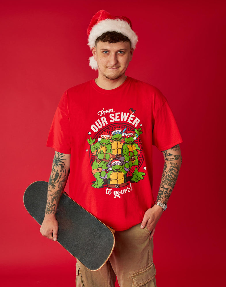 Feel festive and stylish with our Teenage Mutant Ninja Turtles From Our Sewer To Yours Red Men's Christmas T-Shirt!