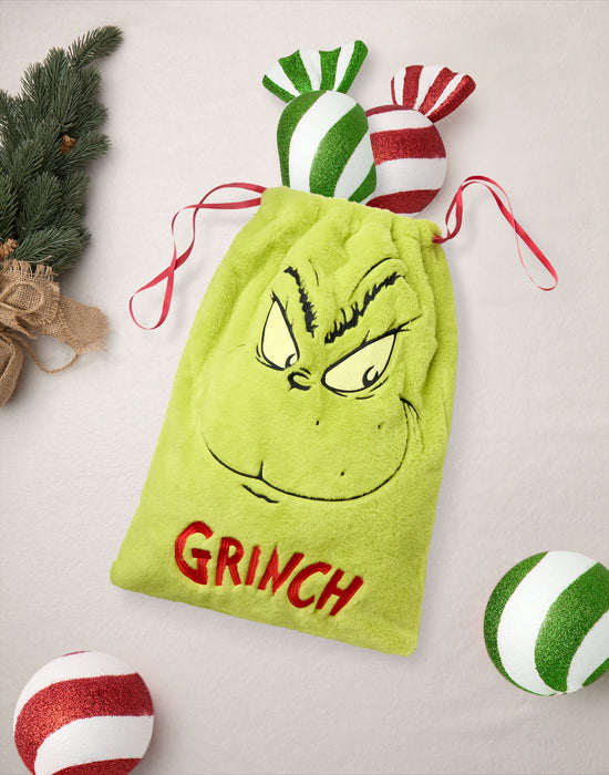 Add a dash of Grinchy mischief to your holiday with this fun and festive Grinch Drawstring Bag!