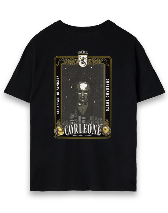 Officially licensed and exclusive to Vanilla Underground, the top comes in black featuring a graphic print of Vito Corleone in New York city 1925 where he founded his family business.