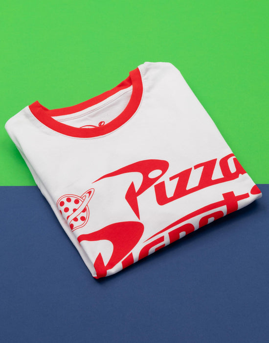 A must-have for Toy Story fans this officially licensed Toy Story Pizza Planet tee for women is packed with cool detail! Perfect for adult fans of the iconic Toy Story movies this top sees the Pizza Planet logo in red set against the crisp white of the t-shirt. As seen in the original Toy Story movie Pizza Planet is the fast food restaurant from the Toy Story world; Woody and Buzz Lightyear manage to hitch a ride on the truck on a mission to be reunited with Andy. This ringer style t-shirt sees a red collar and sleeves, made from 100% cotton this t-shirt for ladies offers a standard fit. Please follow care label instructions carefully.