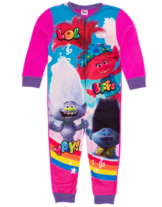 Trolls Girls Pink All In One Fleece Nightwear Pyjamas