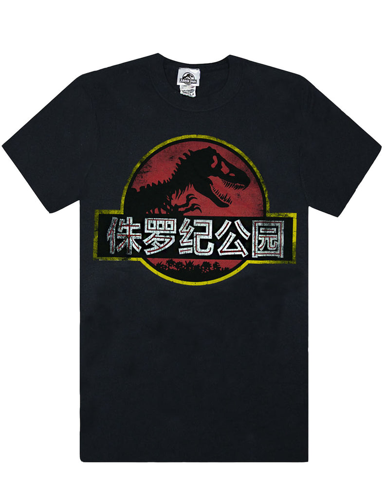 Join the Lost World in style with this awesome officially licensed Jurassic Park Chinese Logo t-shirt! Perfect for fans of the iconic Jurassic Park and Jurassic World this tee has a cool distressed effect finish across the classic T-Rex logo giving it a vintage inspired feel, set against the black of the shirt this print is a stand out addition to your look. Offering something different from the norm the Jurassic Park print has a cool Chinese inspired addition - ideal for fans of the movie franchise. Made from 100% cotton this men's Jurassic Park t-shirt offers a regular fit and feel with crew neck and short sleeves.