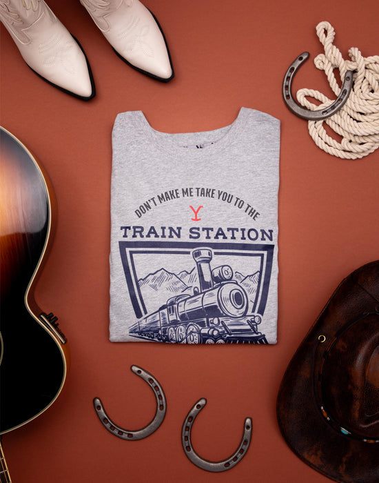 Unleash the untamed spirit of Yellowstone with our Grey Marl Train Station T-shirt!